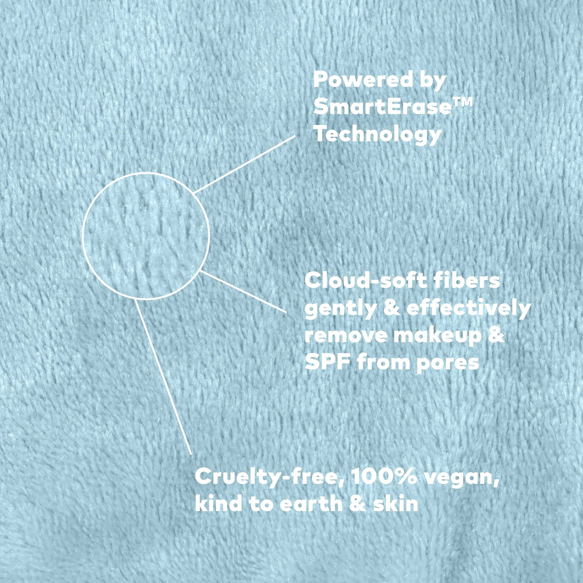 Remove all makeup with JUST WATER™ including waterproof. Our patented, water-activated makeup remover uses cloud-soft fibers to gently & easily remove all cosmetics & sunscreen/SPF from pores. 2 in 1 benefit: Makeup Remover & Exfoliator