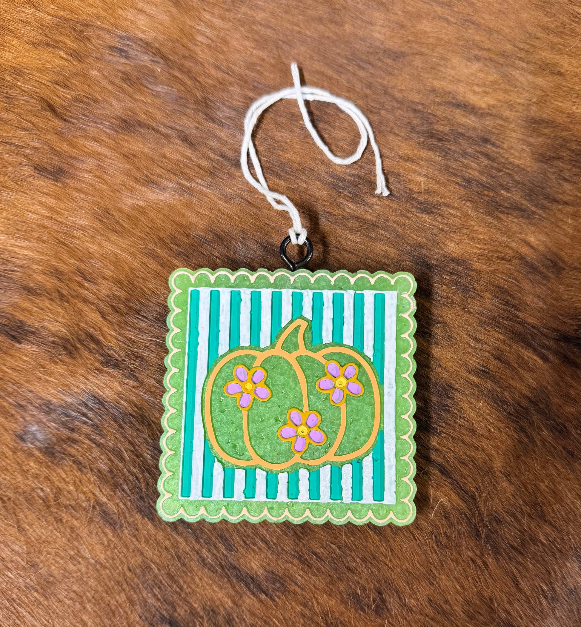 Spruce up your car with a Rye and Rust Freshie! This car air freshener is handmade and hand painted, adding a unique touch to your vehicle. Enjoy the delightful scent while on the go.
