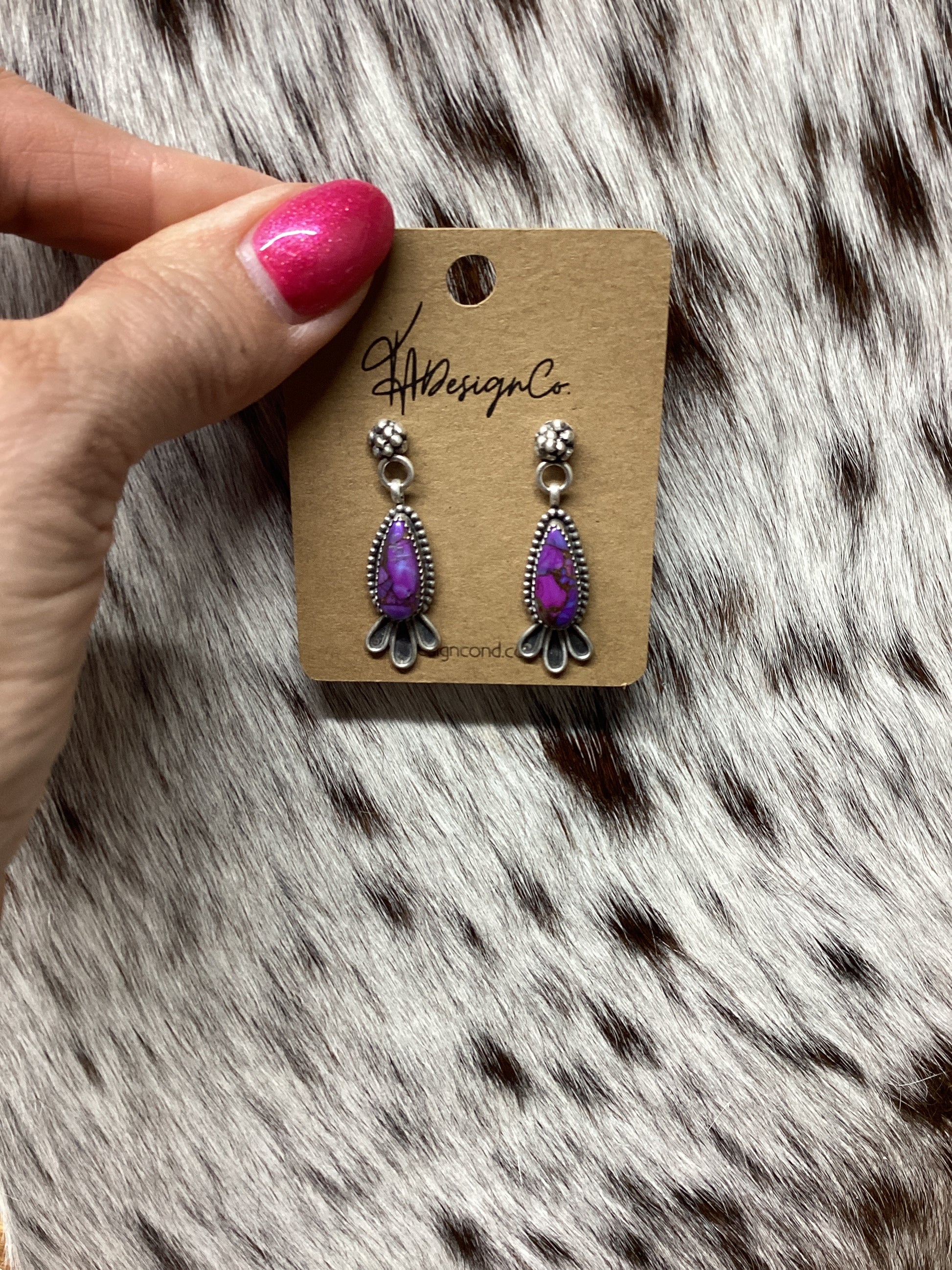 Discover the bold and unique style of the Purple Mohave Dangle Earrings, designed by the talented artists at TA Design Co! These earrings combine the natural beauty of purple Mohave stones with the modern elegance of dangling earrings, creating a statement piece that will elevate any outfit. Add a touch of artistic flair to your jewelry collection today!