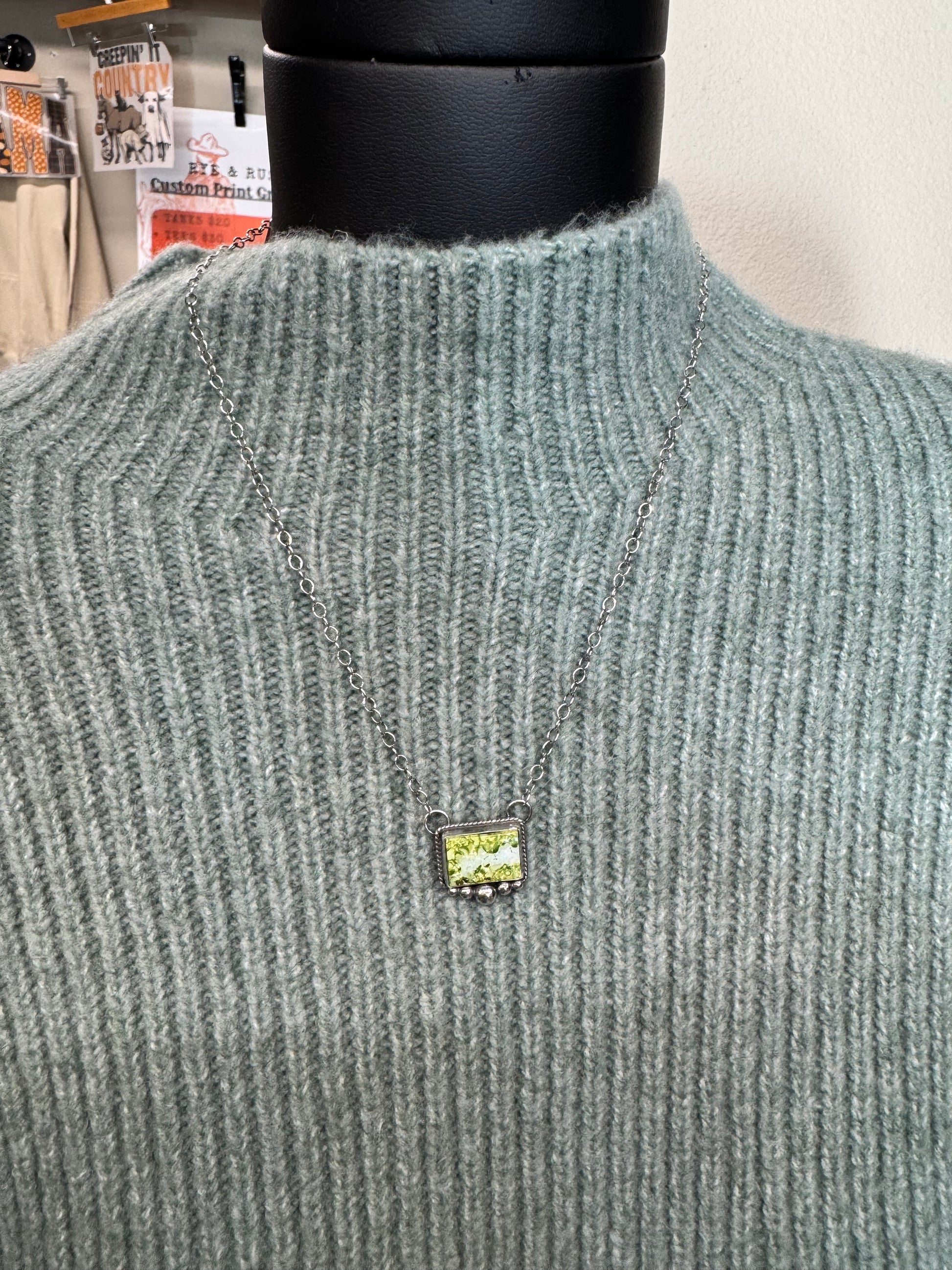 Elevate your style with the Turquoise Mountain Bar Necklace, featuring genuine hand-crafted stones by TA Design Co. Set in sterling silver, these unique earrings combine natural beauty with expert craftsmanship, offering a timeless accessory that enhances any outfit with effortless elegance.
